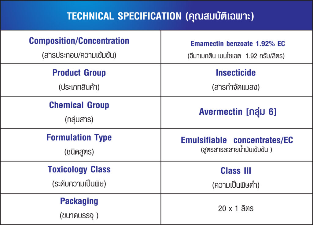 : สารกำจัดแมลงสูตรสำเร็จของสารดูดซึมยุคใหม่กับสารกำจัดแมลงฤทธิ์สัมผัส จึงมีประสิทธิภาพกว้างขวางและกำจัดแมลงศัตรูพืชได้หลากหลายชนิด