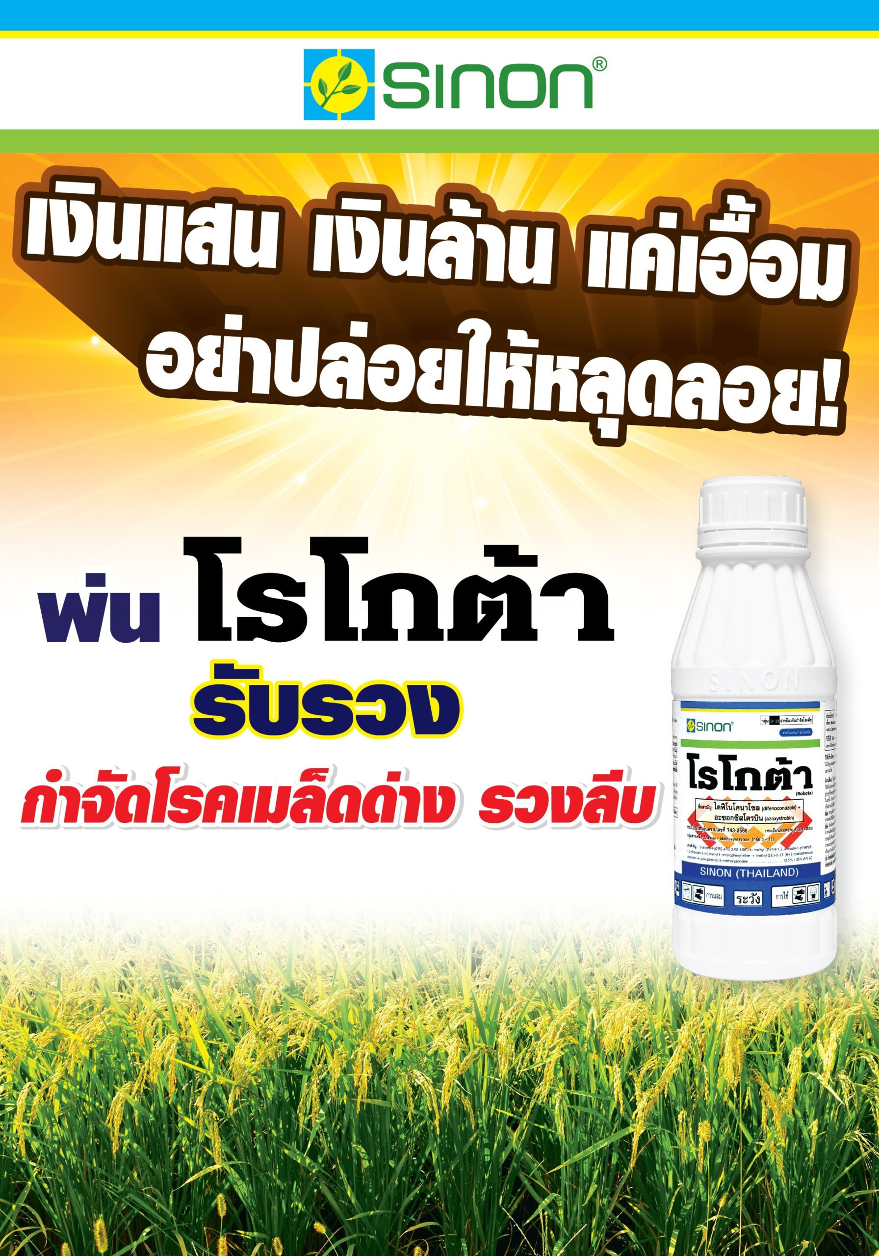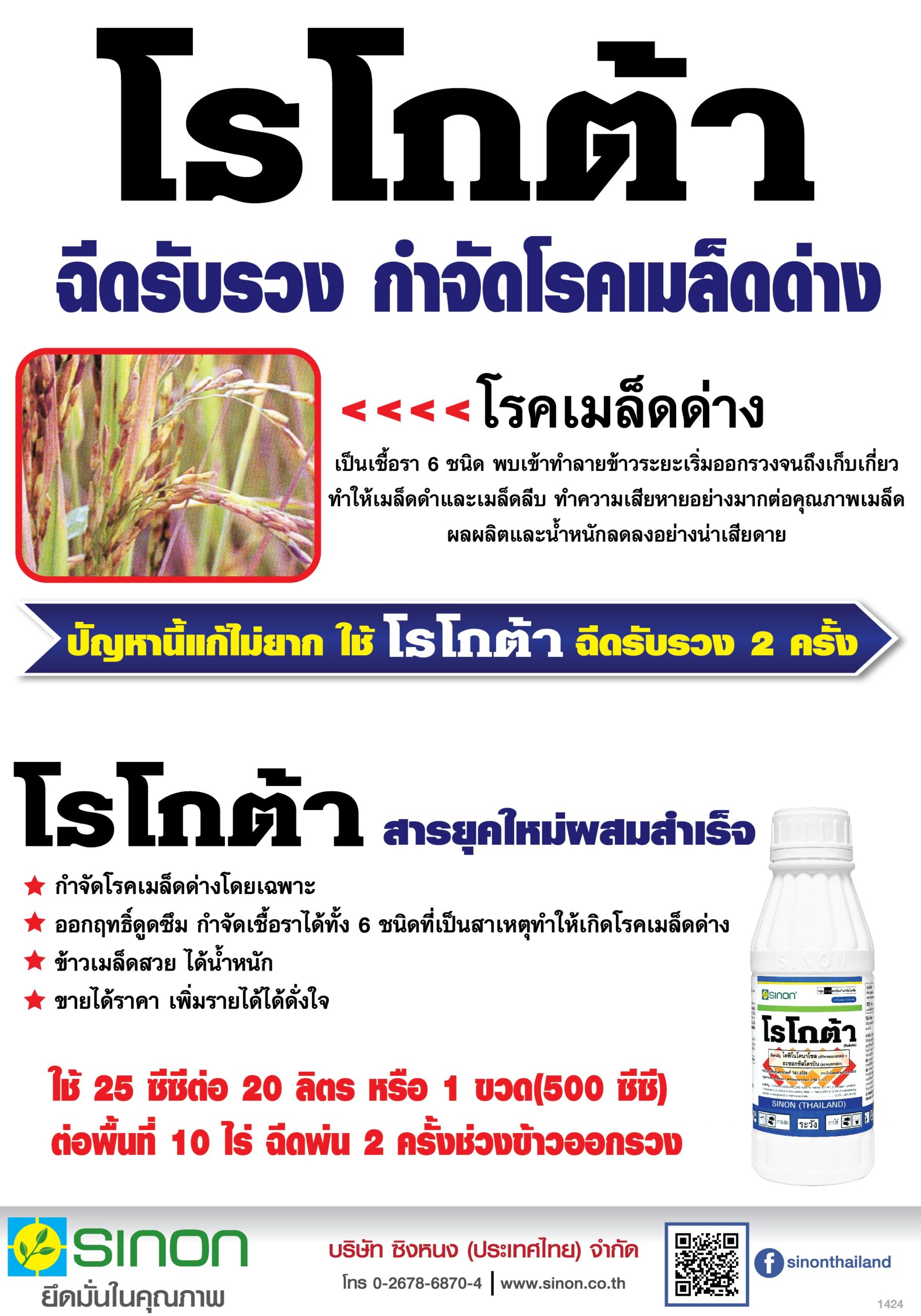 อัตราการใช้: 20-25 ซีซี ต่อน้ำ 20 ลิตร ฉีด 1-2 ครั้งช่วงข้าวออกรวง